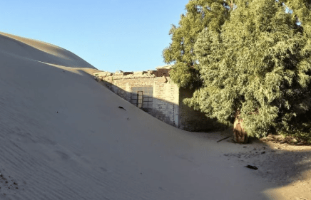 Raúl Torno, vecino histórico del lugar, explicó que el pueblo —de apenas tres cuadras de extensión— tiene solo seis residentes permanentes durante todo el año. Según relató, la zona está rodeada por una inmensa franja de médanos de hasta 20 kilómetros de ancho que avanza de oeste a este, en un entorno agreste y desértico que hoy se volvió una amenaza directa para las construcciones.